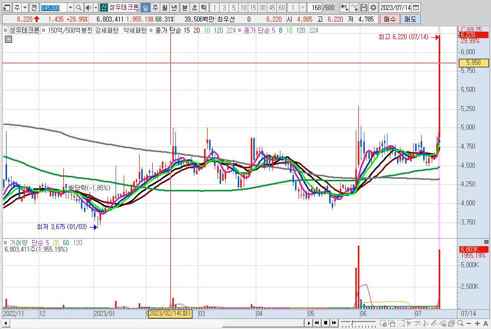 반도체 소부장(소재·부품·장비) 기업인 성우테크론의 주가가 14일 상한가에 진입했다.