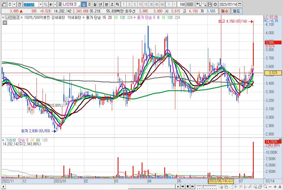 나인테크가 LG전자와 차전지 제조 장비 공급 계약을 체결하며 상승세를 나타내고 있다.