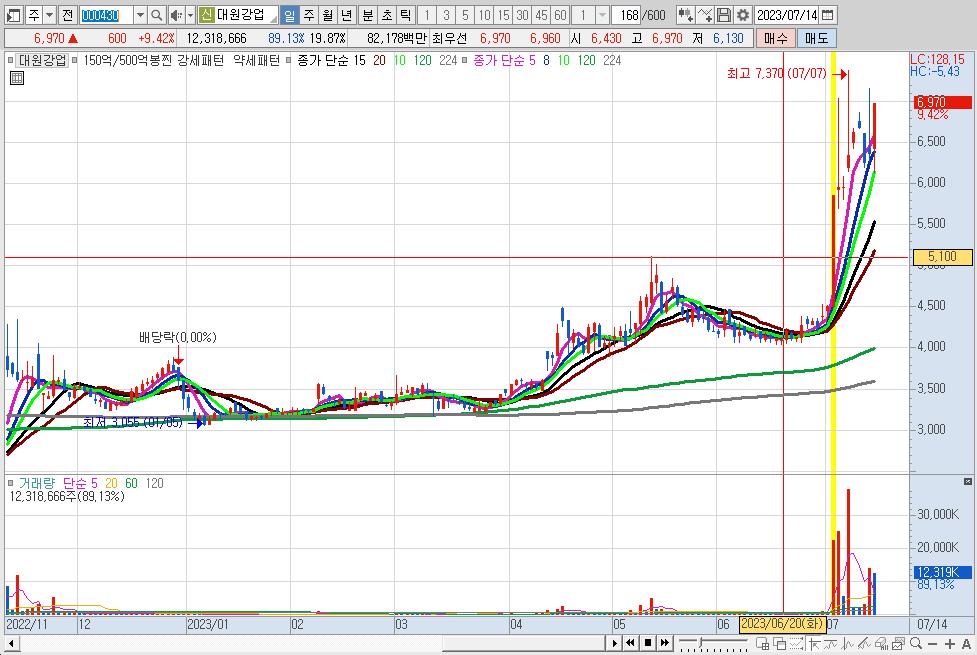 또한 대원강업은 현재 동남아시아, 인도·중국 및 유럽 등 여러 회사와 스프링 제조기술 이전에 관한 기술제휴 계약을 체결하고 있는 것으로 알려지면서 실적 기대감에 주가가 상승한 것으로 보인다.