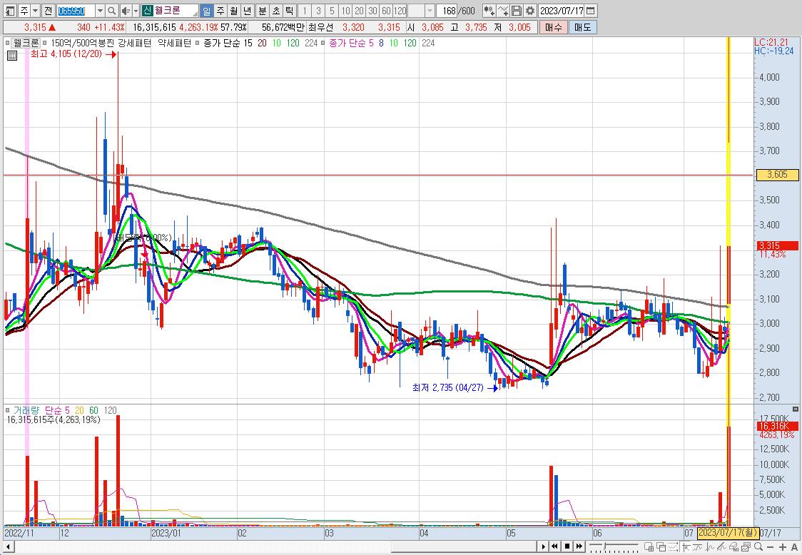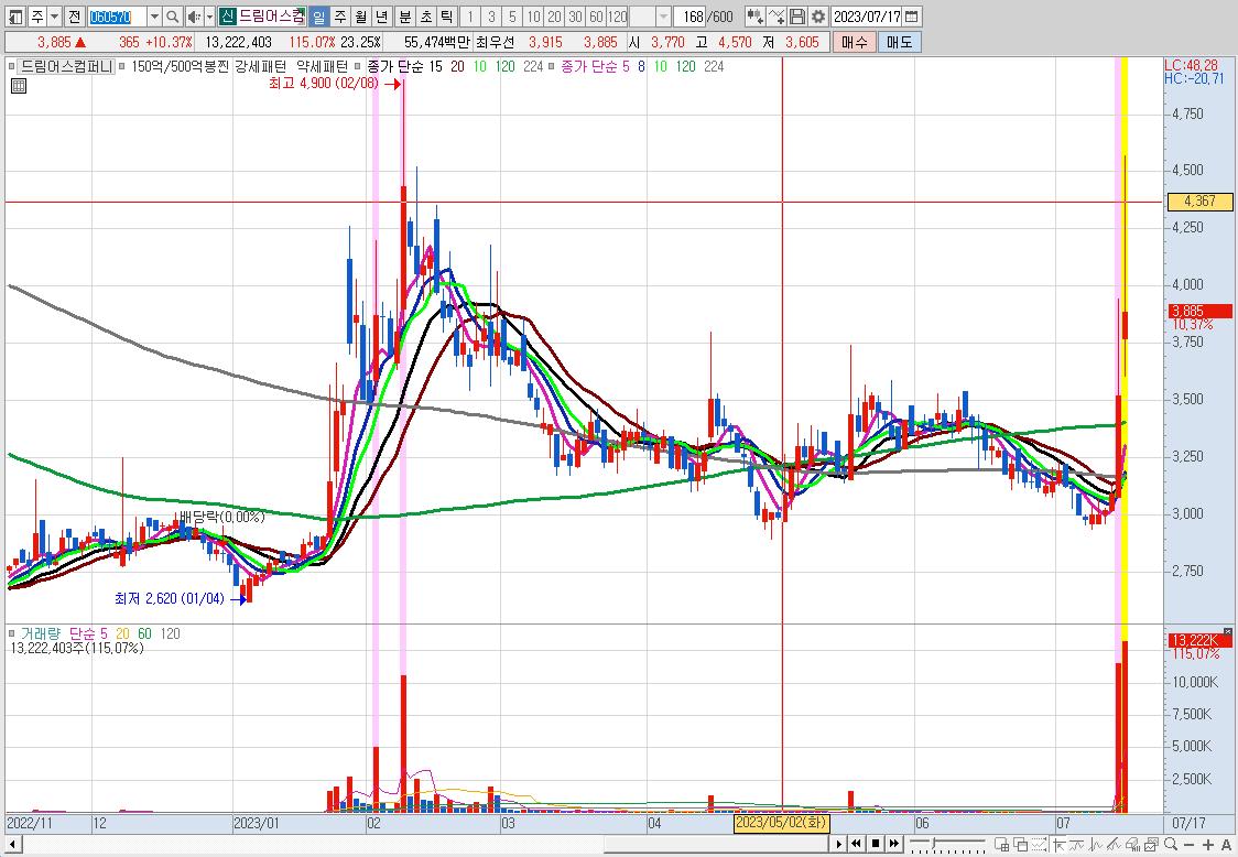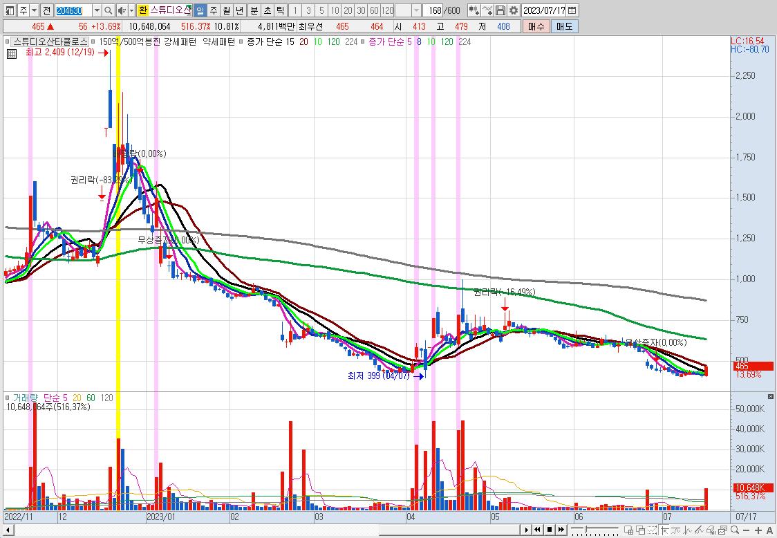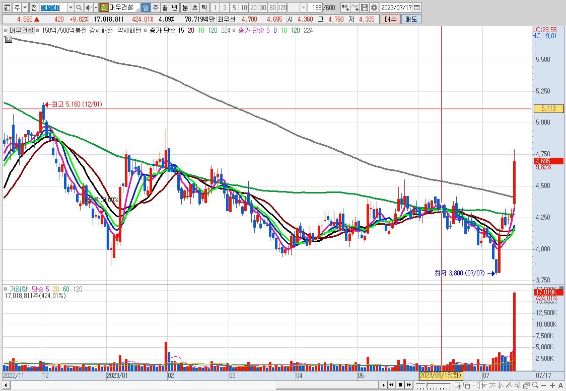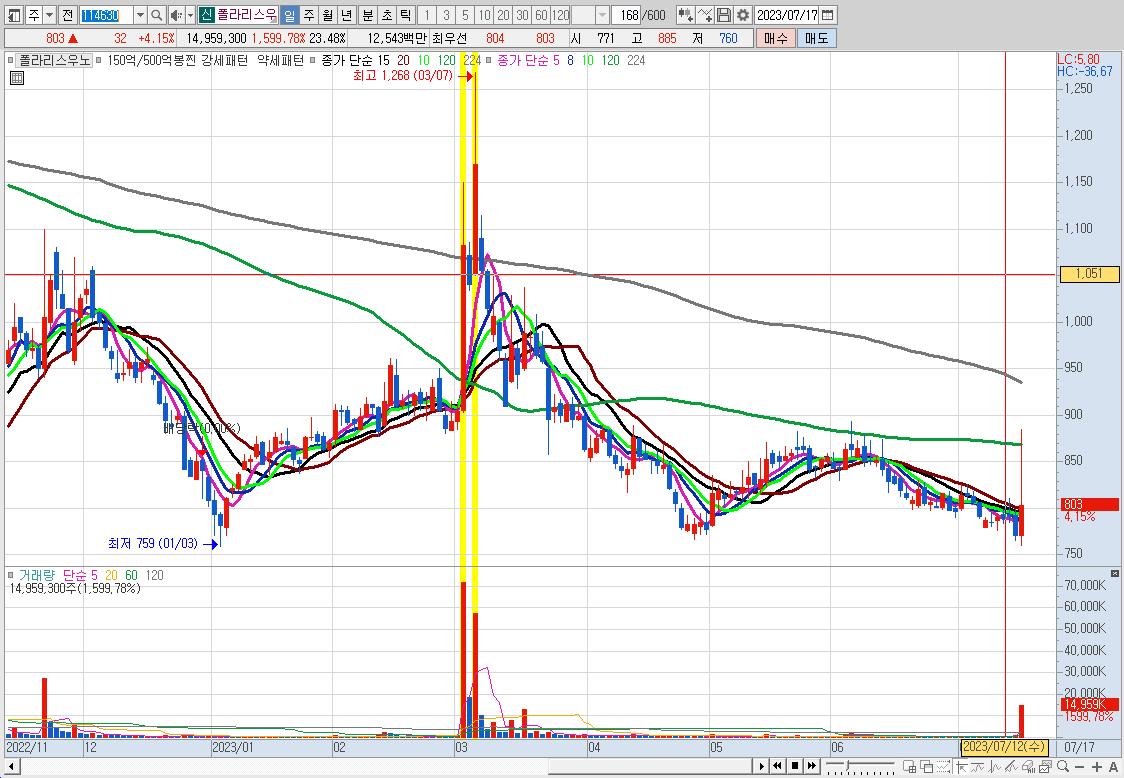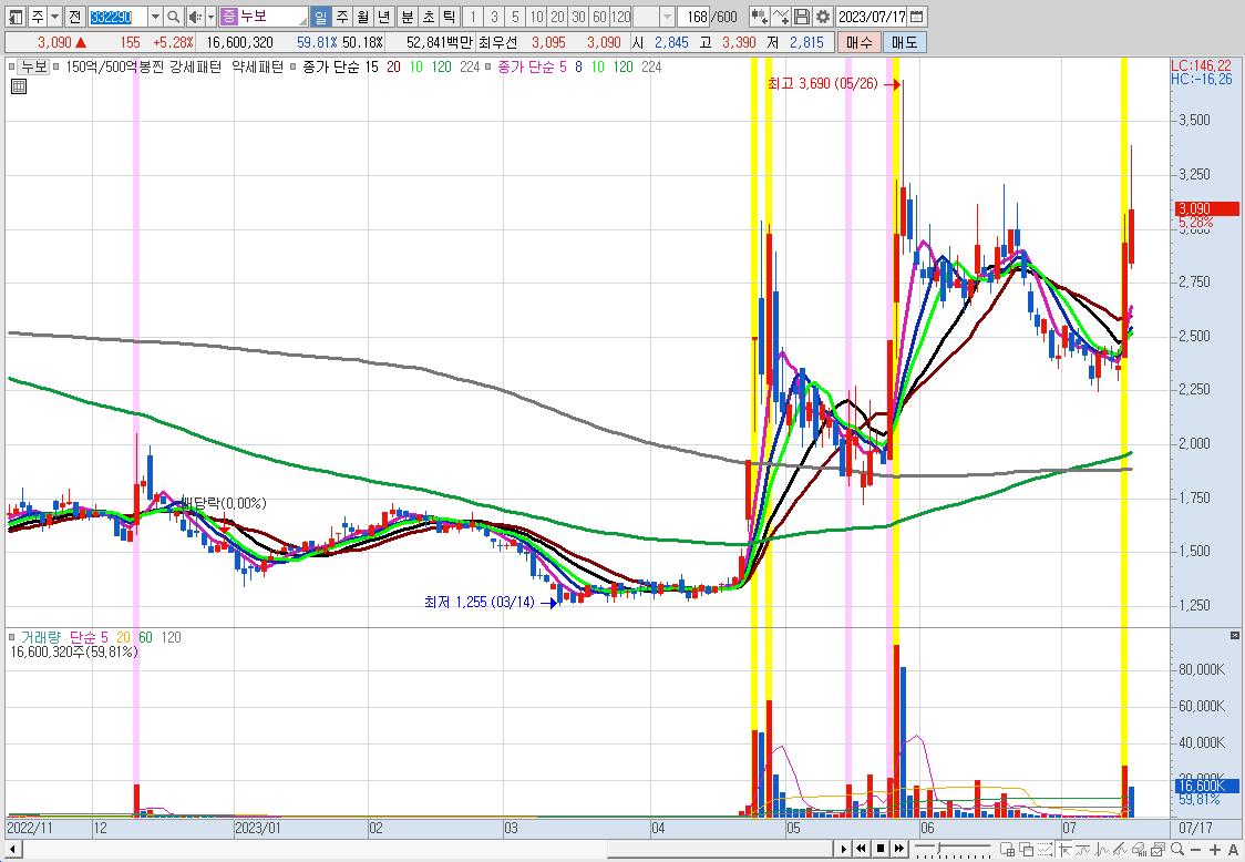 오늘 이전에 노란색 500억봉이 위 기사가 올라온 날이다.
