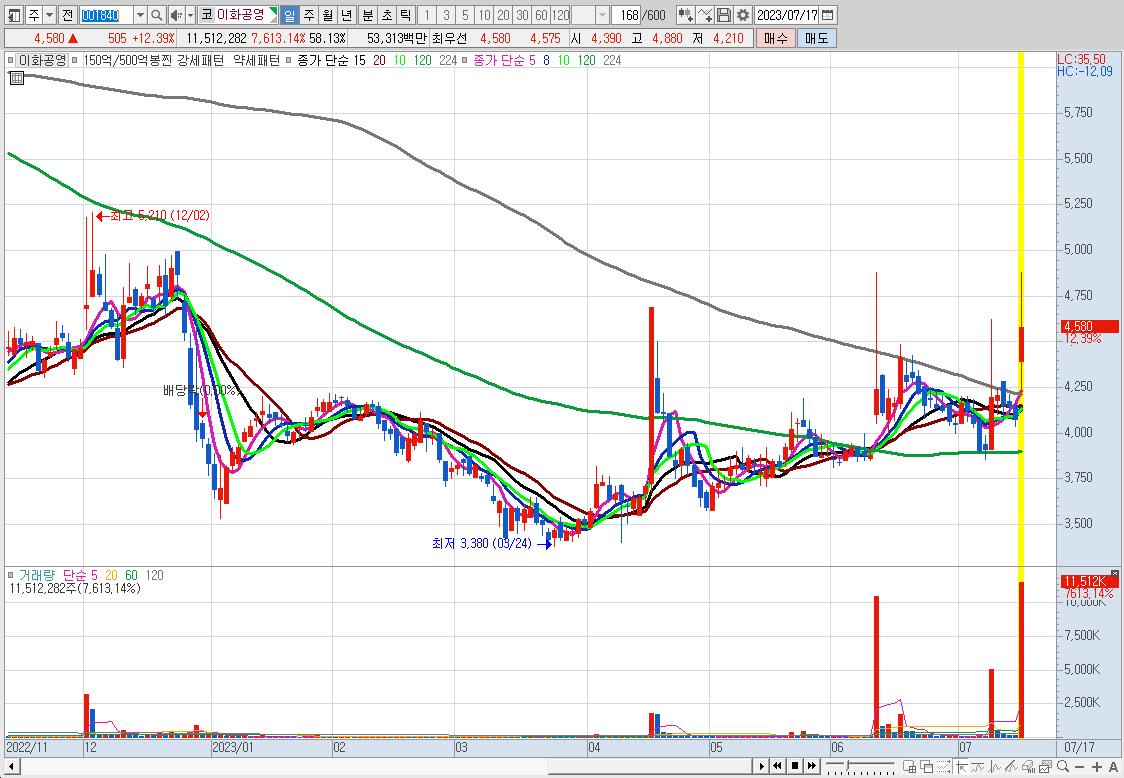이화공영은 지난 2007년 이명박 후보의 4대강 공약과 함께 이명박 테마주로 엮이며 상승세를 나타낸 바 있다.